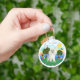 It's a happy day in the country with a smiling sun, pretty flowers, a dove flying overhead and a white toy or miniature Poodle sitting in the soft emerald green grass as the soft breezes blow.