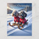 Poodles Sled Ride Christmas Postcard