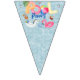 Bunting Flags for a birthday party by the pool featuring a unicorn and flamingo pool float. With our easy customisation options, you can make this birthday party a unique and personalised experience for you and your loved ones. Join us for a memorable day filled with laughter, joy, and fun by the pool!