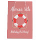 Wow your guests with these cool pool party birthday party designs. The design is cute for small kids but classy enough for teens or even adult summer pool side celebration or barbecue. It features a classic pink background. Our custom party bags are so cute and modern. Get the matching decorations for the party!