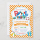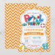 Pool Party Invitation. Summer Splish Splash. Boy Birthday Party Invite. Beach Ball. Swimming. Swimsuit. Birthday Bash. Orange Chevron. White Background. 1st First Birthday. Any Age. Printable Digital. For further customisation, please click the "Customise it" button and use our design tool to modify this template.