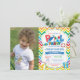 Pool Party Invitation with custom photo. Summer Splish Splash. Boy Birthday Party Invite. Beach Ball. Swimming. Swimsuit. Birthday Bash. Colourful Rainbow Chevron. White Background. 1st First Birthday. Any Age. Printable Digital. For further customisation, please click the "Customise it" button and use our design tool to modify this template.