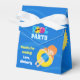 Awesome kids pool party custom party favour boxes for a child's birthday party in the summer. Features a bright, fun pop of colours and an adorable swimming redhead girl in an inner tube. Customise with your own thank you text for guests.
