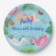 Plates for a birthday party by the pool featuring a unicorn and flamingo pool float. With our easy customisation options, you can make this birthday party a unique and personalised experience for you and your loved ones. Join us for a memorable day filled with laughter, joy, and fun by the pool!