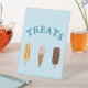 6 X 8 tabletop sign for your food and drink station. A light blue background, featuring ice cream.