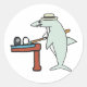 Pool Shark shows a shark playing pool. A cool pun with good looking shark wearing hat and holding cue as he lines up the eight ball.