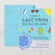 Make a splash with this poolside bachelor party invitation postcard. A bright and colourful design for fun in the sun with the text "Last Swim before the ring.” With a bold, modern layout and playful pool details, it’s perfect for inviting the crew to an unforgettable celebration by the water.