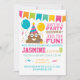 Have a blast and don't be a party pooper with this funny birthday invitation! Features poo emoji with colourful birthday balloons, confetti, and bunting.