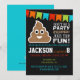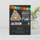 Have a blast and don't be a party pooper with this funny birthday invitation! Features poo emoji with fun colourful bunting.