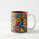This is a Habatour Creations coffee mug, filled with an authentic modern pop art abstract geometric digital pattern design