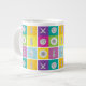 Add a bold, artistic touch to your coffee routine with this eye-catching speciality mug featuring a vibrant pop art botanical and fruit pattern. The design includes grayscale illustrations of sunflowers, pineapples, avocados, kiwis, and peas, each set against colourful background blocks and separated by crisp white borders. With its unique shape and modern style, this mug is perfect for those who love fun, standout drinkware with personality.