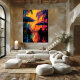 This vibrant pop art design captures the silhouette of people enjoying a night in a tropical cafe, with a background full of warm colors and palm trees. The scene conveys the relaxed and social atmosphere of a night under the stars. Perfect for those looking to add a touch of exoticism and modernity to their spaces, this poster is ideal for decorating homes and offices with an artistic and vibrant expression.