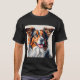 This is a T-shirt with a pop art dog drawing.