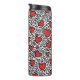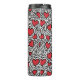 This vibrant pattern features bold, red hearts scattered across a white background filled with dynamic black doodles. The playful design, reminiscent of pop art, uses strong lines and whimsical shapes to create a lively and energetic visual. The juxtaposition of bright red hearts and abstract black strokes evokes a sense of love and spontaneity.