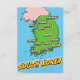 A pop art style map of South Korea with a bright blue background and a dotted pattern.