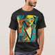 I give wanted to give this a 4 instead of a 5 because these Basic DARK T0shirts run unexpectedly SLIM or Narrow. Which is great if you do not have a potbelly, but I have a paunch. It isn't the shirt's fault that I've got a beer belly. The design and shirt itself is a quality cotton shirt. The color is more of a deep purple, but still a very pretty color. The Basic DARK T-shirts run a bit SLIMMER than the Basic Ts. The neck is a fraction narrower (or seems to be narrower) also. I'm a paunchy middle-aged woman and my neck is 12 inches (31cm) thick and the neckline fell about the same as in the photo of the man, and I had the desire to tug it a bit. So if you're a thick necked man or like loose shirts, be aware these are slimmer shirts. Once I get rid of my lockdown paunch it'll look great. The shirt washed well in cold water with no apparent bleeding. We don't have a dryer, so it hung dry. Did not shrink. Love the colors and the design. The design looks smaller on my shirt than it does on the model on-line. But still, it looks good on the shirt. The printing looks as it does on the model, just the size seems fractionally smaller. Washed garment in cold water, hung dry and design appeared unaffected.