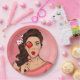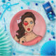 Fun pop art design with a woman holding a heart-shaped lollipop over one eye.