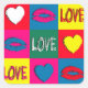 Pop art wallpaper for Valentine's Day with heart and lips decoration in colourful squares