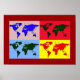 A graphic world map divided in four parts with some colours effects. A full colour idea to the interior wall decor