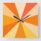 Pop Art Modern 60s Funky Geometric Rays in Orange Square Wall Clock