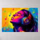 This vibrant pop art music scene features a person lost in the rhythm, with colourful headphones and a bold dragon emblem. The artwork bursts with colour, capturing the freedom and energy of music lovers everywhere. Customise the headphones with your own symbol or emblem and personalise the phrase to make it truly yours. Perfect for music enthusiasts and lovers of bold art, this design adds a vibrant, artistic flair to any space, from living rooms to music studios. Available in multiple sizes, this artwork is an ideal choice for unique and energetic wall décor.