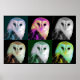 Great looking poster print done in a pop art style, with a barn owl in 6 different colours. Stylish poster and great for any bird lover.