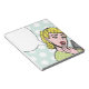 This whimsical notepad is sure to bring a smile to your lips. The Pop Art Speech Bubble Notepad features a lovely young woman applying red lipstick and a speech bubble that is ready to hold your words of wisdom. The girl and speech bubble are on a robin's egg blue, polka dot background. These look great in a gift basket for a Sweet 16 birthday!
