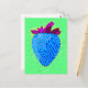 Bright blue strawberry on a green background in Pop art style. For Contemporary & Pop Art lover.