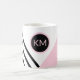 A contemporary pop art geometric pattern with a retro feel, this chic coffee mug has angled black stripes and pink colour block with a prominent matching round frame surrounding your monogram. Personalise with your desired monogram. This item makes a wonderful custom gift for a friend, family member or co-worker.