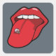 Pop art style of Iillustration of tongue piercing with metallic barbell. Customize sticker, change style, background color. Move image and add your own text with editor.