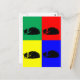 A cute tabby cat takes a nap in this adorable pop art design against a background of blue, red, green and yellow on a postcard