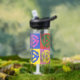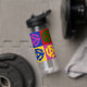 Colourful retro vintage style pop art water bottle for vinyl record collectors, audiophiles and turntable DJs. Music fans will love the throwback 70s and 80s pop art design.