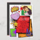 This pop art style wedding invitation has bright, colourful comic strip bursts with a cartoon kissing couple, a cathedral image, stars, grunge, exclamation points, and a purple cloud-like heart with a playful "Yay!" on it that would be perfect for the uniquely different couple wanting a truly original wedding invitation that will be remembered by all their guests. It is shown here on basic paper. It is easily customised with your own information. There is some customisable text that you can edit the way you require. ALSO, please note that everything will print as it appears on your monitor. Zazzle will not edit anything for typos or mis-alignment etc., and I will not see it once you have ordered it. If you need help with your wording, please email me BEFORE you order. If there are any other items you need to make your event extra special, please email your request to niteowlstudio@gmail.com.