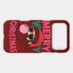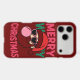 Cute retro Christmas design featuring a playful holiday character blowing a pink bubble gum bubble and wearing heart-shaped sunglasses. Perfect bright and modern Christmas vibe for shirts, gifts, stickers and seasonal merch.