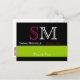 This business card design is sure to attract attention and help you stand out in the crowd. The background is black with lime green and pink accents to set off your text. Perfect for any business but especially great for a makeup artist, bridal salon, wedding planning, event planning, catering, nail salon, spa, jewellery, cosmetologist, fashion, beauty consultant, or any time you would like an elegant touch. Add your information and it is ready to go!