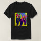 I give wanted to give this a 4 instead of a 5 because these Basic DARK T0shirts run unexpectedly SLIM or Narrow. Which is great if you do not have a potbelly, but I have a paunch. It isn't the shirt's fault that I've got a beer belly. The design and shirt itself is a quality cotton shirt. The color is more of a deep purple, but still a very pretty color. The Basic DARK T-shirts run a bit SLIMMER than the Basic Ts. The neck is a fraction narrower (or seems to be narrower) also. I'm a paunchy middle-aged woman and my neck is 12 inches (31cm) thick and the neckline fell about the same as in the photo of the man, and I had the desire to tug it a bit. So if you're a thick necked man or like loose shirts, be aware these are slimmer shirts. Once I get rid of my lockdown paunch it'll look great. The shirt washed well in cold water with no apparent bleeding. We don't have a dryer, so it hung dry. Did not shrink. Love the colors and the design. The design looks smaller on my shirt than it does on the model on-line. But still, it looks good on the shirt. The printing looks as it does on the model, just the size seems fractionally smaller. Washed garment in cold water, hung dry and design appeared unaffected.