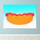 An image of a hot dog on a blue background. Decoration for kitchens and restaurants. Digital image.