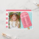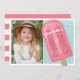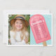 Chill out with these cute popsicle themed party invitations for your little one's summer birthday party. Fun summer design features a bright pink popsicle illustration on a turquoise blue background. Personalise with your party details in white retro style lettering, and add a photo of the birthday child for an extra special touch.