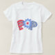 Fun Fourth of July shirt! "Pop" written in a patriotic hand drawn design with fireworks for the "o."