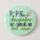 Are you celebrating a friend's engagement? These cute buttons would be fun to wear while you toast the bride-to-be. There's an engagement ring for the letter "o" in Pop. The words "champagne" and "last name" are written in the same green as the champagne bottle.