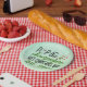 Are you celebrating a friend's engagement? These cute plates would be fun to wear while you toast the bride-to-be. There's an engagement ring for the letter "o" in Pop. The words "champagne" and "last name" are written in the same green as the champagne bottle. There are other matching items like napkins and cups.