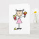 Stick figure girl has her hands full with popcorn and a caramel apple.