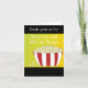 A fun design featuring a big red and white bowl of buttery popcorn on a shaded yellow background. Customise with your message as desired.