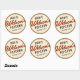 round stickers are offered on a sheet of 6 or a roll; choose glossy or matte. Custom fonts and colors or upload your own logo