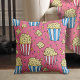 Throw Pillow: Add a fun pop of colour to your home with this Family Movie Night throw pillow. Featuring the delightful pink and blue striped popcorn buckets on a soft pink background, this pillow is perfect for adding a playful touch to your living room or home theatre. Whether you're lounging on the couch or building the perfect pillow fort for movie night, this throw pillow is the perfect accessory for cosy comfort.