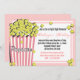 Pink popcorn invitation perfect for movie nights and sleepovers. Customise for text for any age birthday party or celebration.