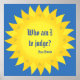 This poster features a quote from Pope Francis set within a yellow sun on a blue background. The colours are a part of the Pontiff's Coat of Arms. The text reads: Who am I to judge? It is an example of the greatness and humility of this very special man.