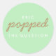 Popped the Question Popcorn Welcome Bag Sticker in Mint Green and Brown. Adhere this sticker to a bag of freshly popped popcorn!