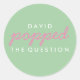 Popped the Question Popcorn Welcome Bag Sticker in Pink and Green. Adhere this sticker to a bag of freshly popped popcorn!