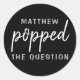 Popped the Question Popcorn Welcome Bag Sticker in Black and Silver. Adhere this sticker to a bag of freshly popped popcorn!